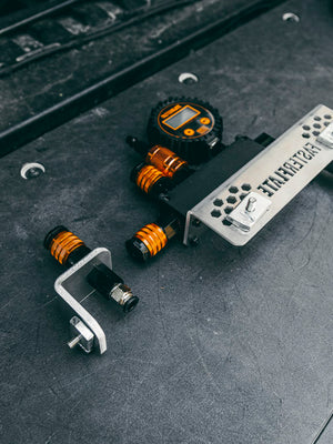 The manifold is the central hub of your system. It features a digital pressure gauge and a Slide Valve for easy operation. The slide valve allows you to quickly start or stop airflow to all connected tires simultaneously with a simple push/pull motion.